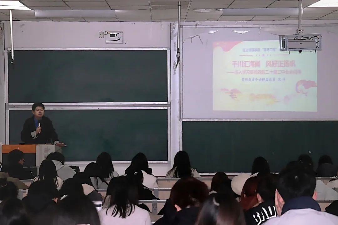为深入学习贯彻党的二十届三中全会精神,把青年学生的思想和行动统一到全会决策部署上来,把力量凝聚到全会的各项任务上来,12月4日下午,校团委邀请遵义医科大学马克思主义学院党委委员、副院长沈洋以《千川汇海阔,风好正扬帆》为主题,在执闳楼105教室为第十期青马班、第三十六期业余团校全体学员授课。