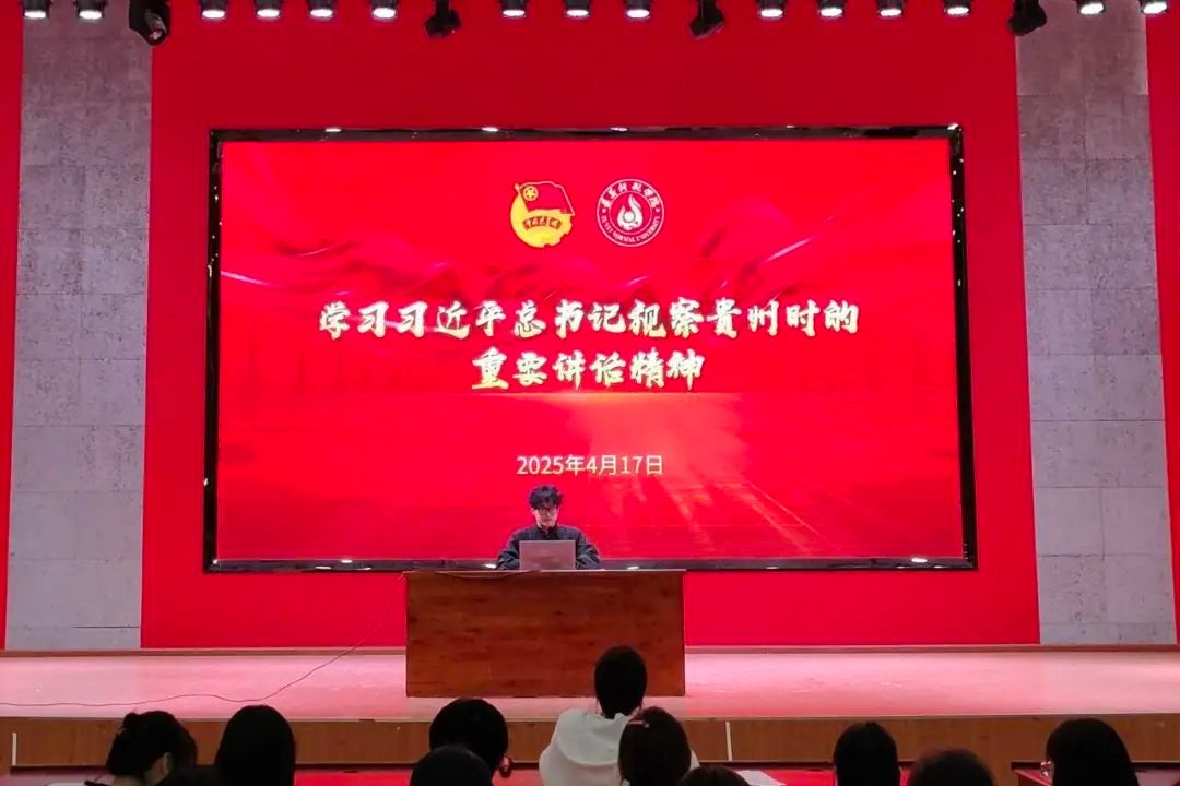 学生会成员戚浩然带领学生会全体成员学习习近平总书记考察贵州时的重要讲话精神。感悟思想伟力,筑牢政治忠诚之魂,提高了学生会全体成员的思想觉悟,鼓舞大家秉持实事求是作风,勇立时代潮头,争做矢志奋斗的新时代青年先锋。