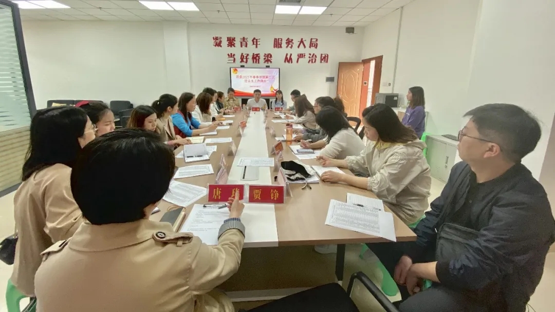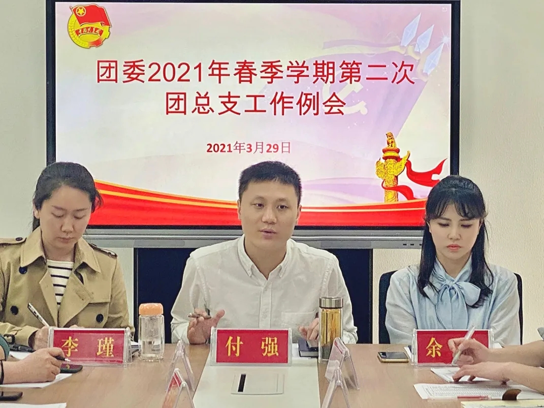 2021年3月29日下午,校团委在学生中心309室组织召开本学期第二次团总支工作例会。会议由校团委书记付强主持,校团委全体成员、各二级学院团总支书记(副书记)及负责人参会。