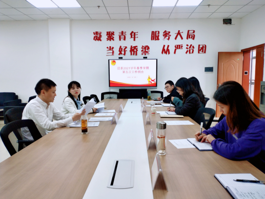 2021年3月29日上午,团委在学生中心309室召开2021年春季学期第五次工作例会,团委书记付强主持会议,全体教职工参加。