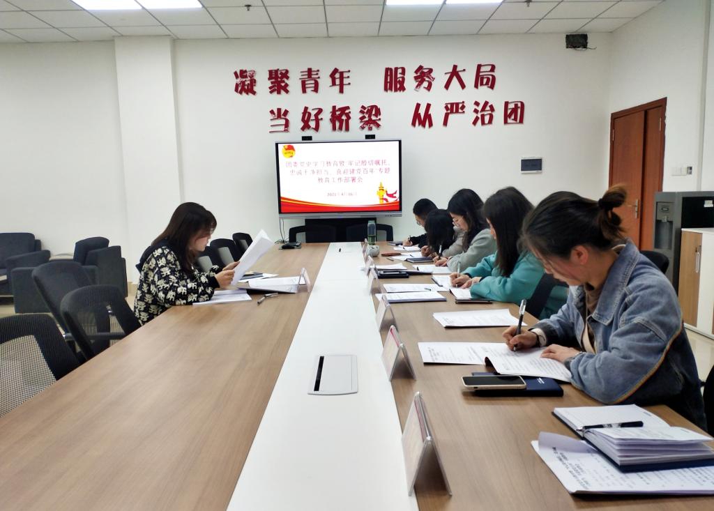 4月16日上午,团委在学生活动中心309室召开团委党史学习教育暨“牢记殷切嘱托、忠诚干净担当、喜迎建党百年”专题教育工作部署会。会议由团委副书记余睿主持,团委全体教职工参加。