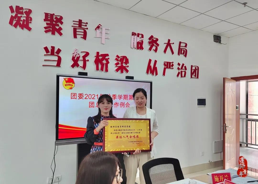 会上,团委各部室负责人对近期“第二课堂”“智慧团建”“微团课比赛”“升旗仪式”“社团招新”“春晖炫家乡”“低碳生活,绿建未来”等重要工作分别作了详细的安排部署。余睿为物理与电子科学学院颁发了建党100周年师生合唱比赛网络票选“最佳人气合唱团”奖牌。