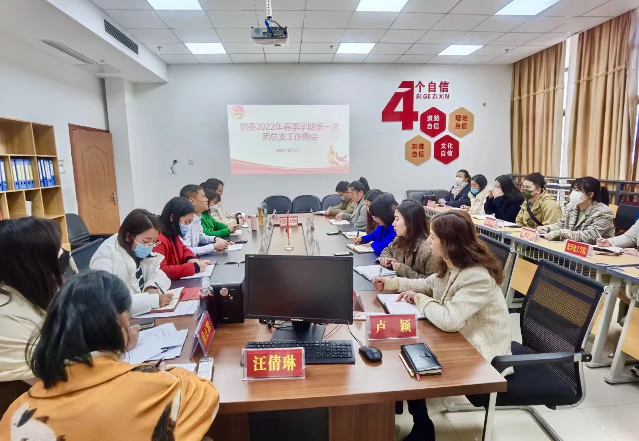 3月1日下午2:30,校团委在学生中心405室组织召开了2022年春季学期第一次团总支工作例会。团委书记付强、副书记余睿、副书记李瑾、各二级学院团总支书记(副书记)、负责人及团委全体工作人员参会。会议由付强主持。