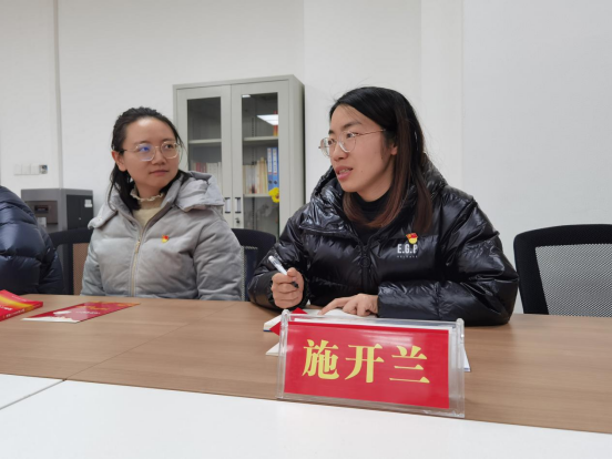 随后,余睿同志组织党员过“政治生日”。过“政治生日”的余睿、李瑾、施开兰、贾铮四名党员同志分别分享自身入党经历和入党以来的学习工作历程,并承诺在大是大非前保持定力,守住底线,听党话、跟党走。