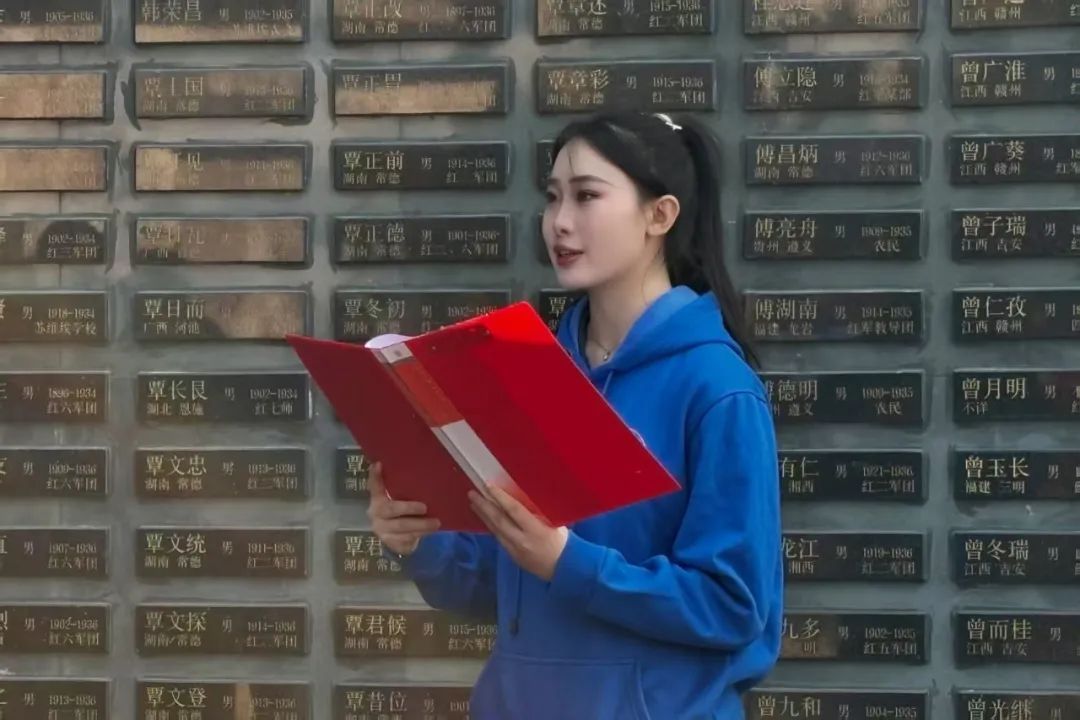 随后,师生缓步绕行纪念碑,凝视镌刻其上的357位英烈姓名。青灰色纪念碑在晨光中泛起历史釉色,指尖抚过冰凉的镌刻铭文,每一名英烈的故事仿佛在这一刻复活,让在场的师生肃然起敬,心中涌动着对先烈的无限敬意。