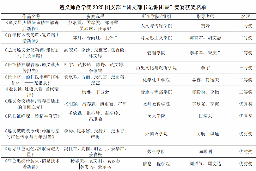 经过激烈比拼,最终奖项尘埃落定。人文与传媒学院任荣妃《遵义星火耀征途,精神解码启新程》脱颖而出,斩获一等奖;马克思主义学院郑月《百年树木映光辉,复兴路上踏新征》等10个作品亦表现亮眼,分获二、三等奖及优秀奖。