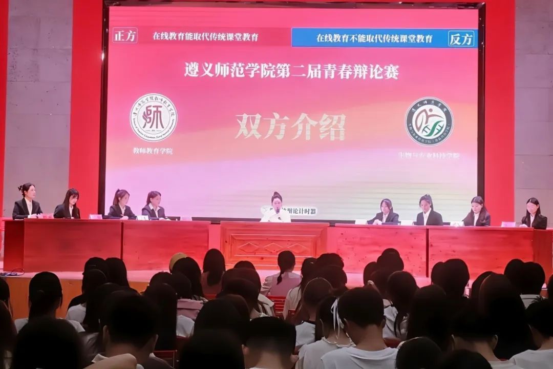 在三、四名决赛中,教师教育学院与生物与农业科技学院双方围绕“在线教育能否取代传统课堂教育”展开激烈辩论。正方紧扣在线教育的便捷性与资源共享优势,论证其革新潜力;反方则强调传统课堂的情感互动与实践价值,结合现实教学场景进行反驳。双方你来我往,妙语连珠,展现出扎实的思辨功底,最终教师教育学院更胜一筹,斩获季军。