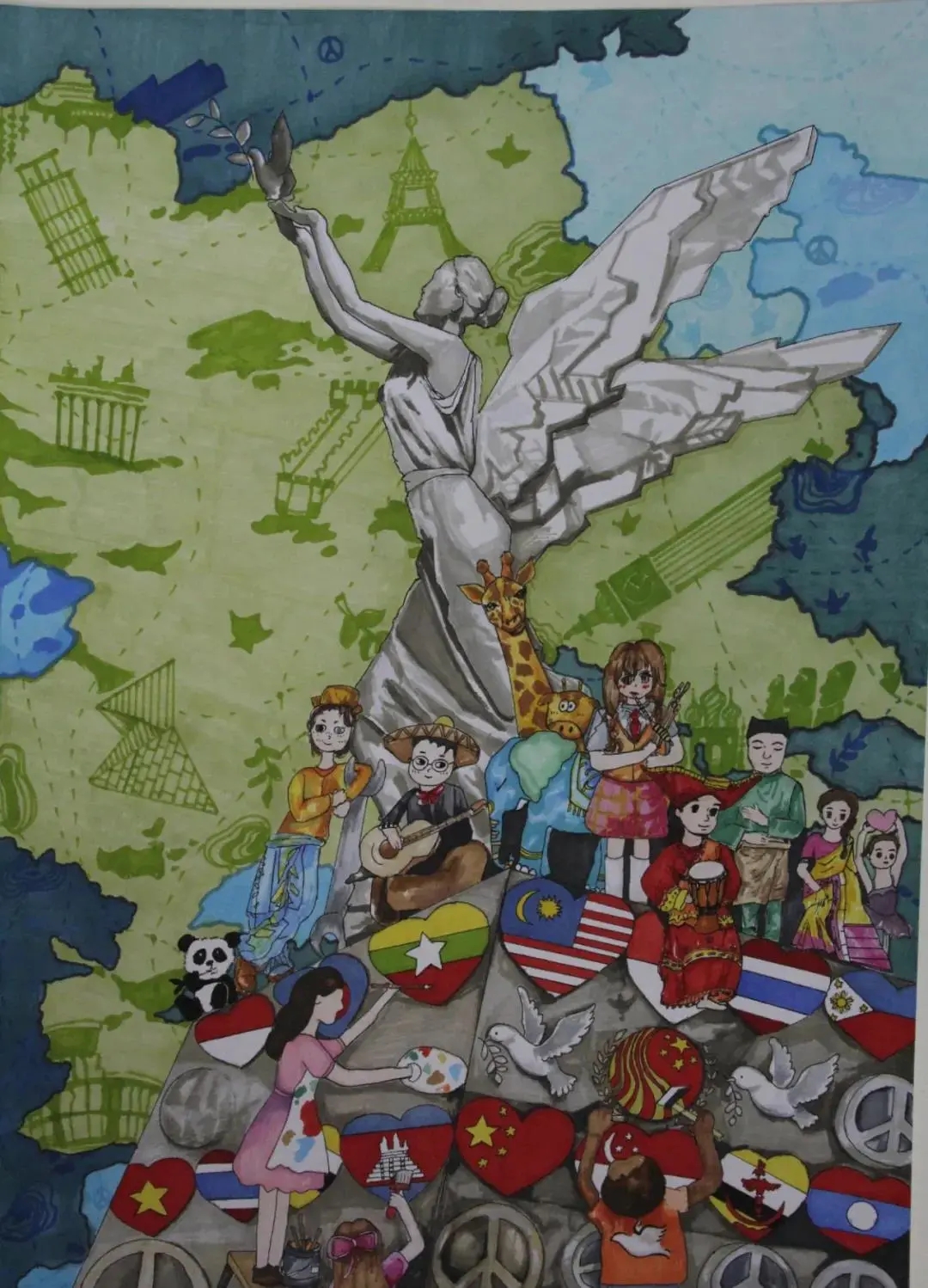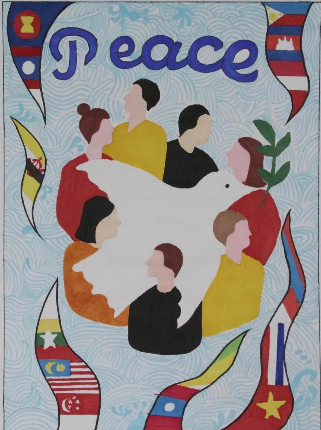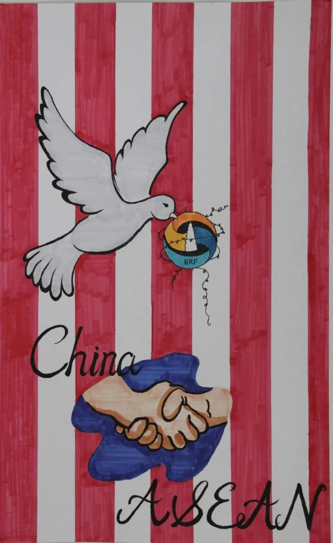 beat365选送的作品内容都紧扣我国与东盟国家同舟共济、共克时艰,携手抗击新冠肺炎疫情这一主题,一幅幅绘画作品别出心裁、夺人眼球,充分表达了中国与东盟青年的深厚情谊。同学们以画纸为纽带,画出我国与东盟国家的美丽蓝图;以画笔为依托,勾勒出我国与东盟国家的壮阔未来;以画作为信物,促进了中国与东盟青年文化艺术的交流与合作。下面,小编带大家一起欣赏优秀画作吧!