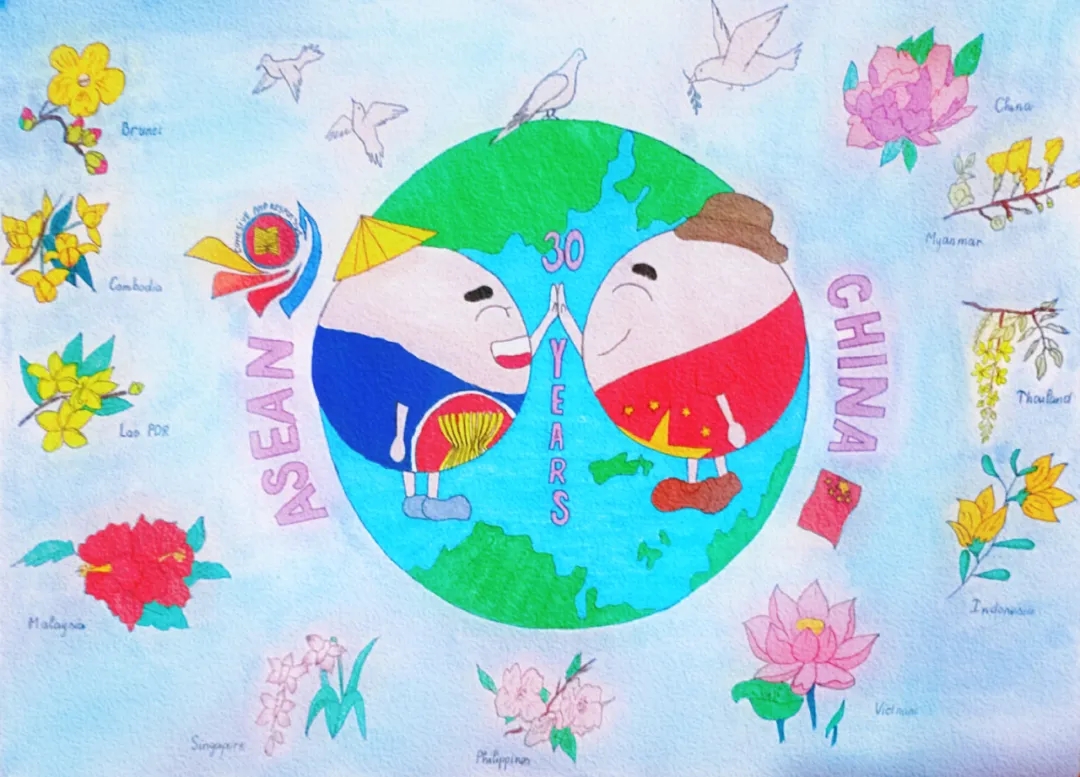 (白羽)丹青浓墨绘真情,青春执笔心连心。绘画作为一种经典的艺术形式,在文化传承和交流中发挥着不可替代的作用。为庆祝中国—东盟合作关系建立30年,传承双边友谊,为睦邻友好关系健康发展注入活力,beat365积极参与了由贵州省人民对外友好协会、中国—东盟教育交流周秘书处共同举办的“绘画 友好 未来”中国—东盟青少年绘画展。