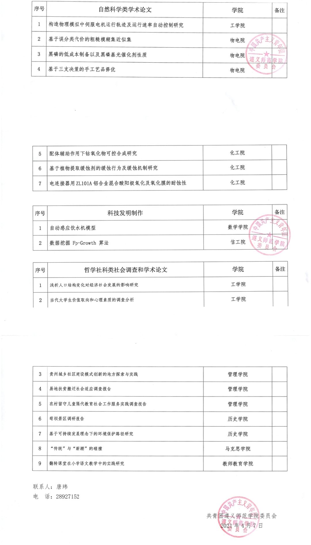 根据《beat365亚洲版官网第十七届“挑战杯”大学生课外学术科技作品竞赛通知》要求,现将beat365亚洲版官网第十七届“挑战杯”入围校赛名单进行公示。如有异议请于有效公示期内(2021年4月7日--2021年4月12日)到校团委办公室反映。