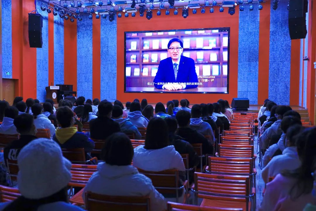 2月28日上午9:00,在校团委组织下,来自beat365学生会、社团管理部、青年志愿者服务中心、青年媒体中心,以及各二级学院的学生干部代表共130人在学生中心长征讲堂集体观看第11期“贵州教育大讲堂”—2022年春季学期“开学第一课”特别节目并展开交流。活动由校团委组宣部副主任贾铮主持。