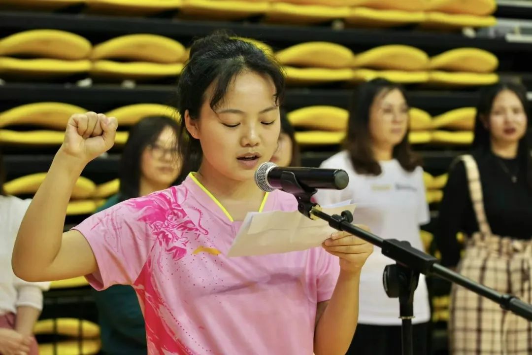 体育学院2019级的蒋发和教师教育学院2018级的莫金花分别代表裁判员和运动员宣誓。