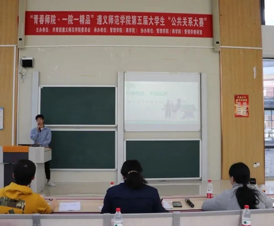 为助力乡村振兴,传承红色文化,打造专属品牌,展现新时代大学生的综合素质。2022年11月11日15:00,由校团委主办,管理学院(商学院)承办的“青春师院·一院一精品”第五届大学生公共关系大赛决赛在执治楼112报告厅隆重举行。