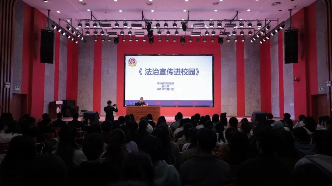 为深入学习宣传贯彻党的二十大精神,进一步提升青年学生的法治意识,增强法治观念和法律素养。3月10日下午3点,校团委在学生中心长征讲堂组织开展了“学习二十大、永远跟党走、奋进新征程”2023年春季学期法治教育讲座活动。本次活动邀请贵州省监狱系统罪犯思想政治教育巡讲讲师、贵州省黔北监狱狱政管理科副科长肖礼军主讲。全校200余名学生代表参加活动。