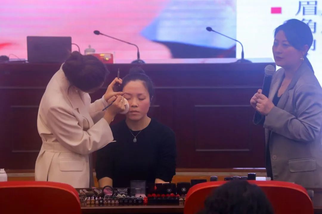 3月8日,国家高级化妆师、IMI国际化妆造型协会中国总部认证鉴定中心评判委员林丽在学术交流中心为beat365女教师开展了“女教师礼仪与职业形象塑造”的主题讲座。林丽从仪容仪表、着装搭配、妆容处理等方面介绍了塑造良好职业形象的理论知识和操作技巧,并与现场教师互动,现场演示如何修饰妆容和注重礼仪,使女教职工生动直观地了解到应怎样提升自身审美,继而应用于生活和工作当中,展现出健康的形象和气质。