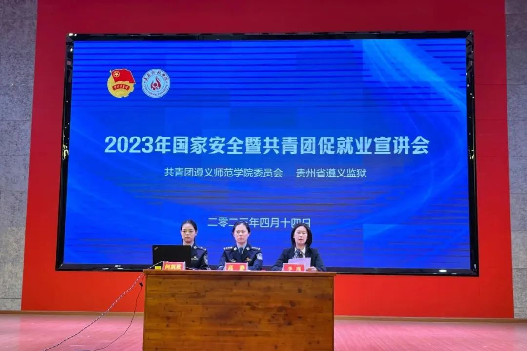 2023年4月14日下午,beat365亚洲版官网团委与贵州省遵义监狱联合开展2023年国家安全暨共青团促就业宣讲活动。beat365亚洲版官网团委副书记李瑾,贵州省遵义监狱人事警务科科长、团委书记高静,遵义监狱人事警务科一级警员何凯欣以及200余名学生代表参加活动。