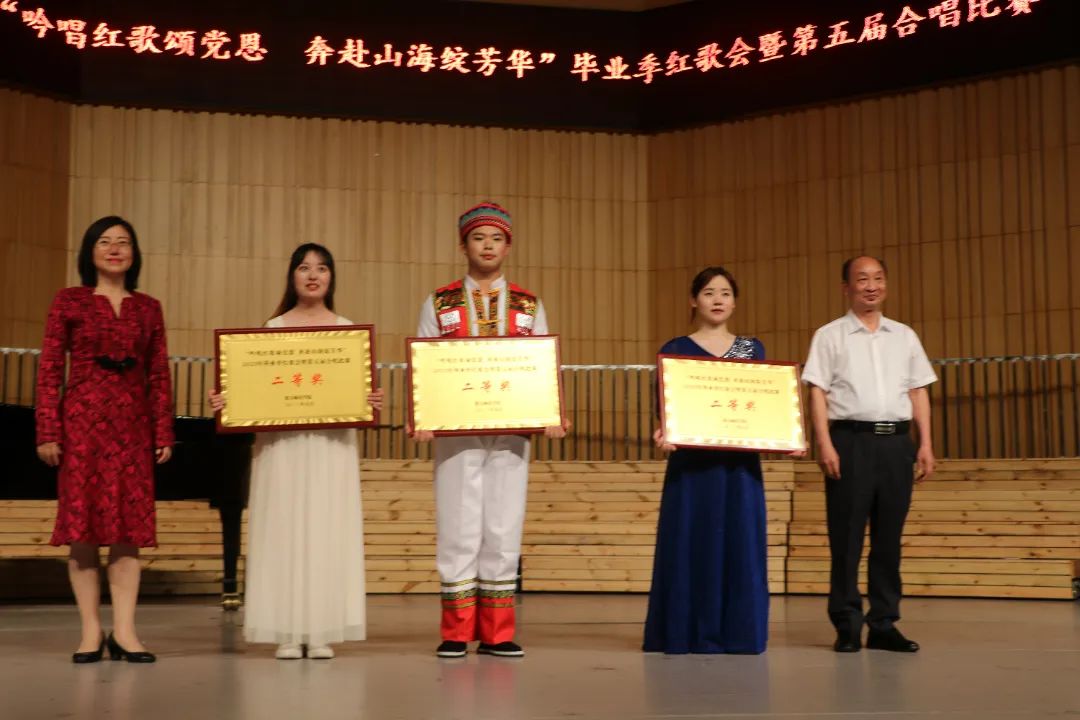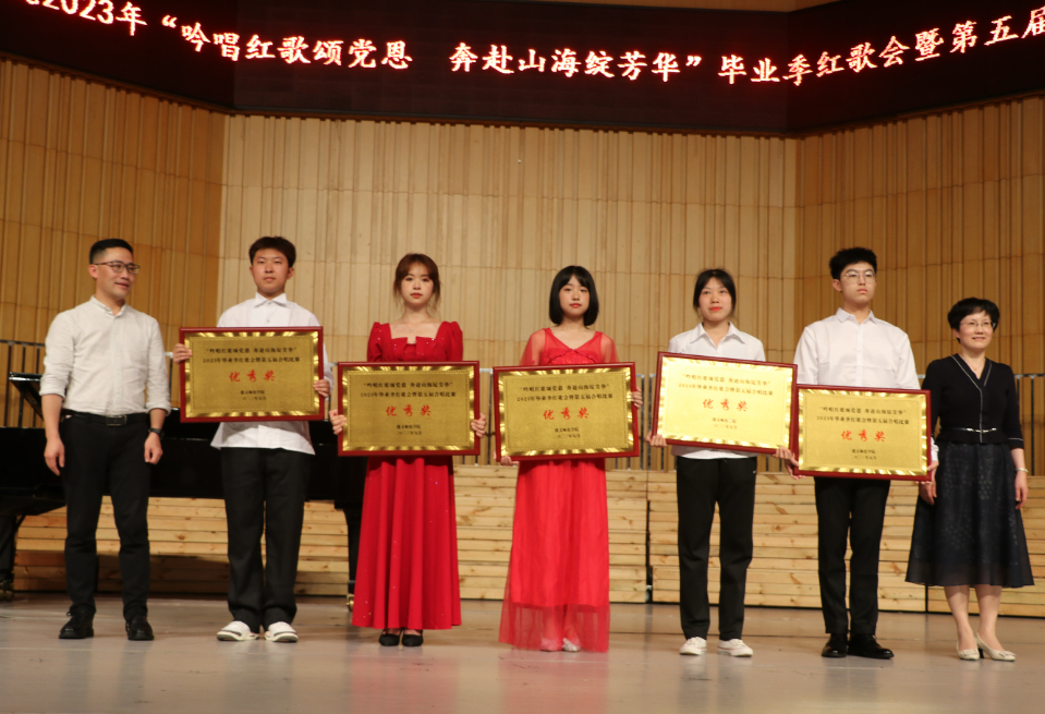 最终音乐与舞蹈学院获特等奖,人文与传媒学院、外国语学院获一等奖;管理学院、教师教育学院、数学学院获二等奖;化学化工学院、美术学院、资源与环境学院、生物与农业科技学院、历史文化与旅游学院获三等奖;信息工程学院、工学院、马克思主义学院、体育学院、物理与电子科学学院获优秀奖。张波、刘肇军、曾伯平、娄胜霞、刘剑、江山、王明述、王春华分别为获奖学院颁奖。