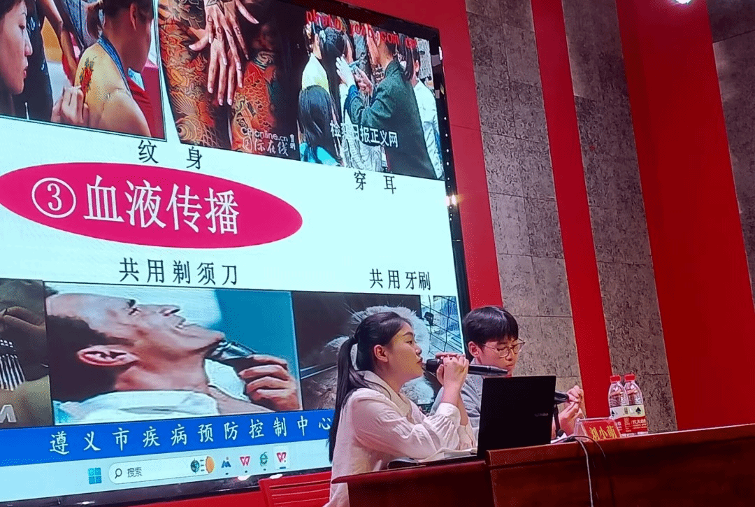 beat365红十字会同伴宣讲员刘小萌在讲座中通过防艾公益宣传片和主题PPT从多个角度,对艾滋病的含义、传播途径、以及防治方法等进行了详细的阐述,还现场演示了艾滋病自测试剂盒的正确使用方法及步骤,让同学们切实认识到艾滋病距离自己并不遥远。