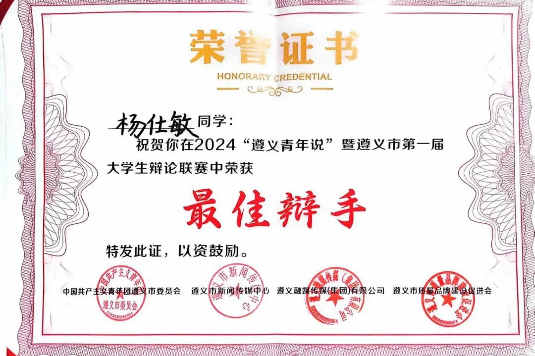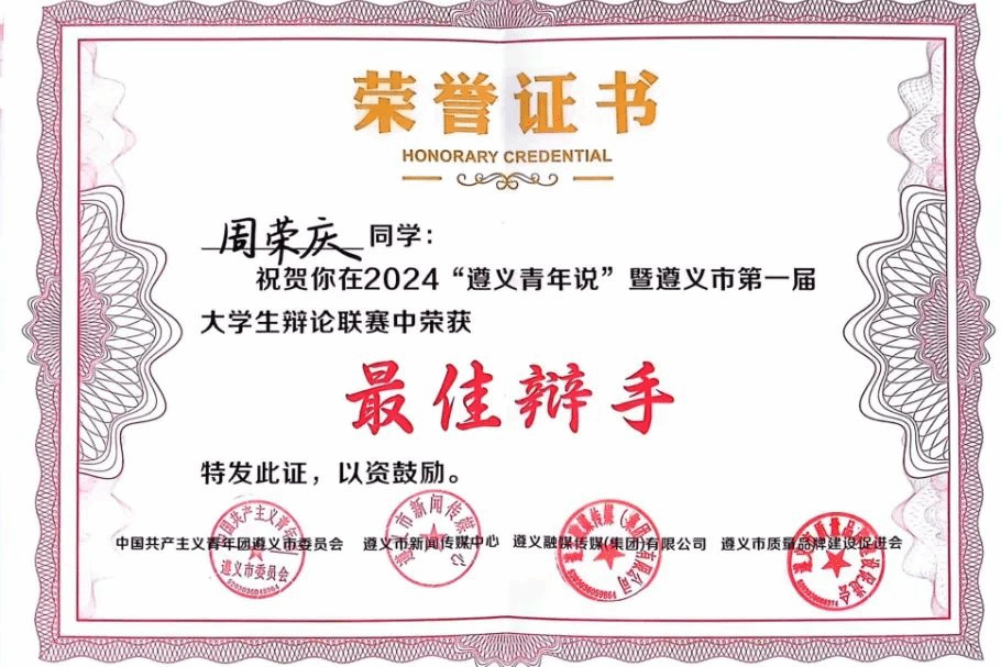 6月16日,由共青团中央·未来网指导,共青团遵义市委、遵义市新闻传媒中心主办,遵义融媒传媒(集团)有限公司、遵义市质量品牌建设促进会承办的2024“遵义青年说”暨遵义市第一届大学生辩论联赛在遵义市新闻传媒中心演播厅落下帷幕。在校团委的组织下,由罗筱娟老师指导的beat365亚洲版官网辩论一队在比赛中获得了亚军。杨仕敏、周荣庆获得比赛最佳辩手,beat365获得“最佳组织奖”。(图文 | 胡倩 排版 | 胡倩 初审 | 罗星 复审 | 敖正雅 终审 | 余睿 李瑾)