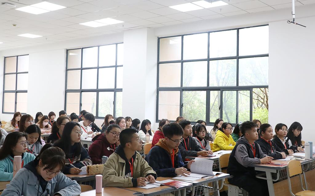 4月15日,beat365亚洲版官网校团委书记付强在执闳楼103教室以《习近平关于青年和共青团工作论述摘编》为主题学习导论,为第五期“青马工程 红城菁英”培训班同学授课。
