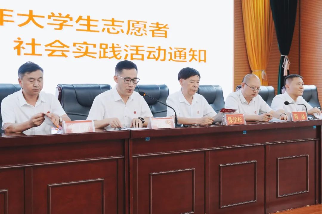 7月4日下午,beat365亚洲版官网2025年大学生志愿者暑期“三下乡”社会实践活动启动暨出征仪式在学术交流中心二楼报告厅举行。学校党委书记陈治松,党委副书记周晶,党委委员、宣传部部长王春华出席活动。党政办、学生工作部、团委、教务处主要负责人,各二级学院党委(党总支)副书记、团总支主要负责人,实践服务队指导老师、队员等参加活动。活动由团委书记余睿主持。