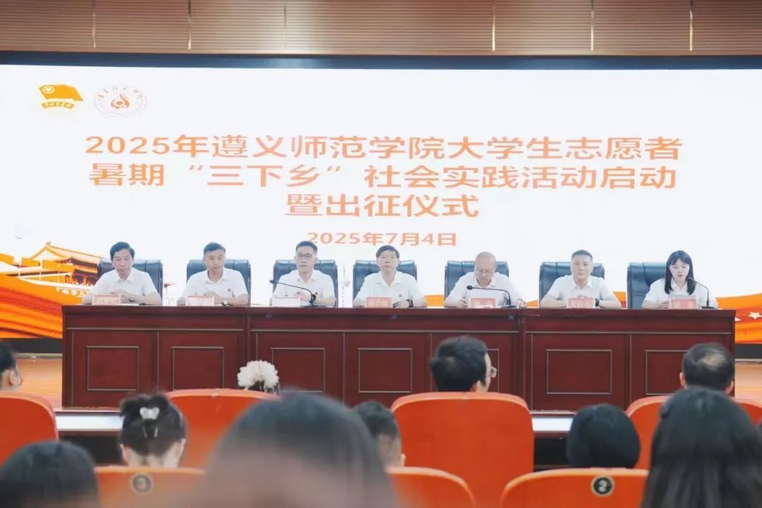 周晶代表学校党委向即将奔赴基层、躬身实践的全体志愿者师生致以崇高的敬意和美好的祝愿,并向大家提出三点要求:一要深刻领会时代重托,铸牢青春向党之魂。通过社会实践在服务贵州“四新”使命和“百姓富、生态美”目标的实践中深化对党的创新理论的理解,争做新时代的信仰者和践行者;二要聚焦贵州发展所需,锻造挺膺担当之能。结合专业优势,深入基层一线“自找苦吃”,锤炼意志、提升能力,展现遵师青年“红心向党,本领过硬”的风采;三要强化组织服务保障,筑牢安全实践之基。做好实践活动培训指导和安全教育,加强对学生社会实践活动从立项、实践到总结的全过程指导把关。最后,周晶宣布beat365亚洲版官网2025年大学生志愿者暑期“三下乡”社会实践活动正式启动。