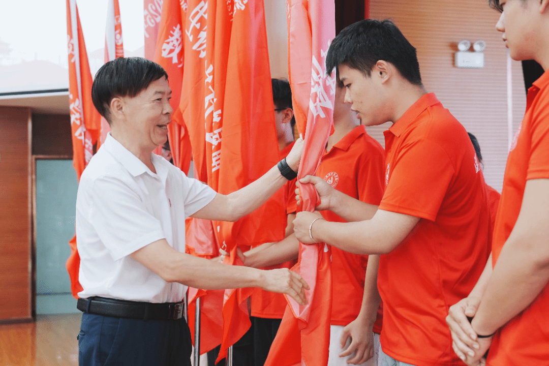 仪式上,陈治松为即将踏上征程的2025年大学生志愿者暑期“三下乡”社会实践团队授旗。