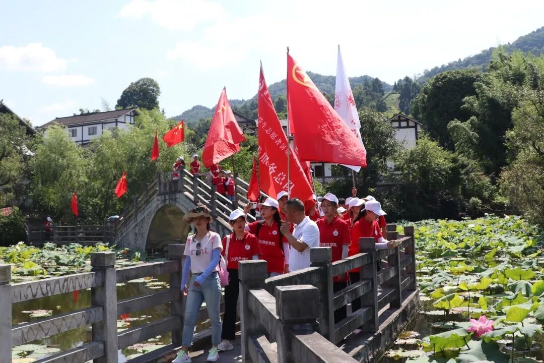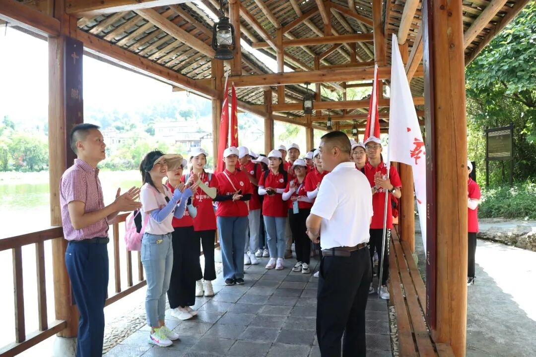 为引导和帮助广大青年学生上好与现实相结合的“大思政课”,在社会课堂中学党史、强信念、跟党走,努力成为担当民族复兴大任的时代新人,2021年7月12日上午,在团委书记付强、副书记余睿以及校团委全体老师的带领下,beat365亚洲版官网2021年大学生暑期“三下乡”社会实践总队来到了湄潭县首批黔北民居新村示范点之一,也是“十谢共产党”发祥地田家沟进行党史学习考察。