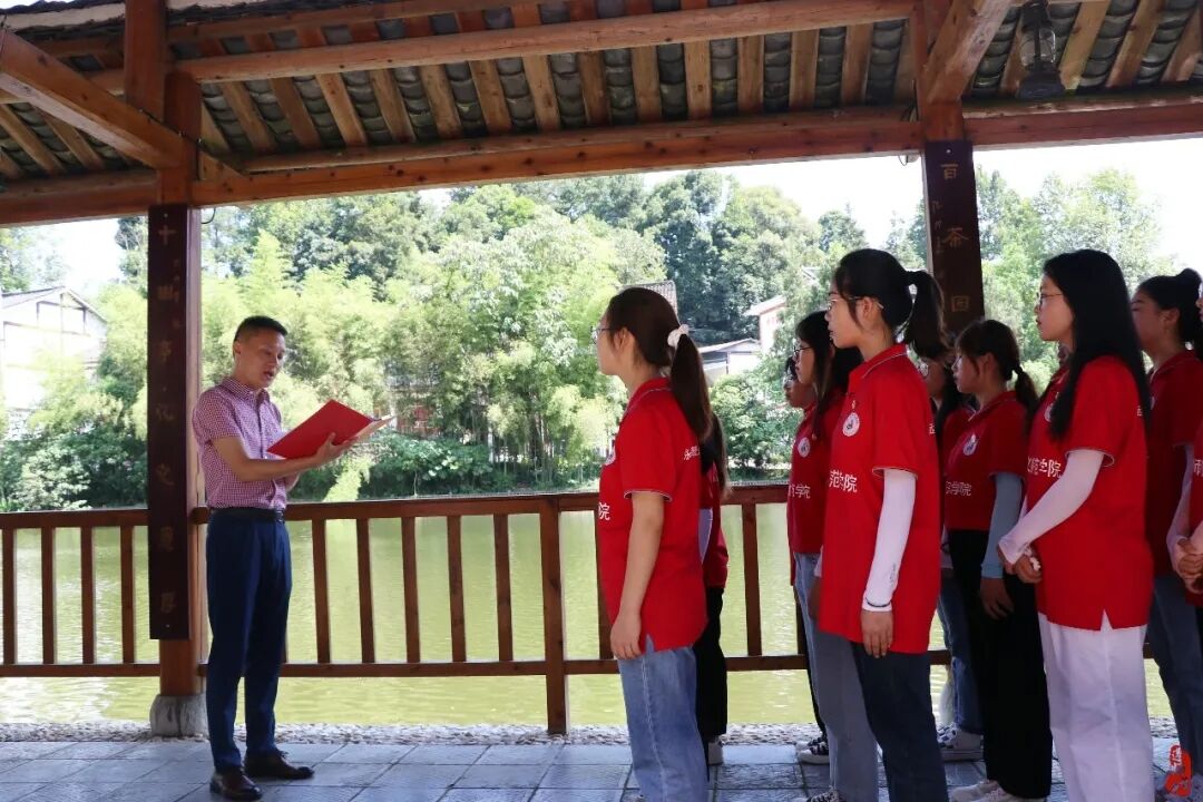 随后,在十谢亭里,校团委书记付强主持召开了2021年大学生志愿者暑期“三下乡”社会实践活动总队临时团支部成立大会。会上,付强书记宣读关于组建临时团支部的批复,带领团员重温入团誓词,并领学习近平总书记在中国共产党成立100周年庆祝大会上的讲话。他强调,当代大学生,应该在社会实践中践行党员不畏难、不畏苦、不畏艰辛的精神,发挥先锋模范带头作用,增长才干,敢于奉献。信党爱党为党,把伟大建党精神继承下去发扬光大,应用于学习生活和工作岗位中,展示遵师学子青春风采。