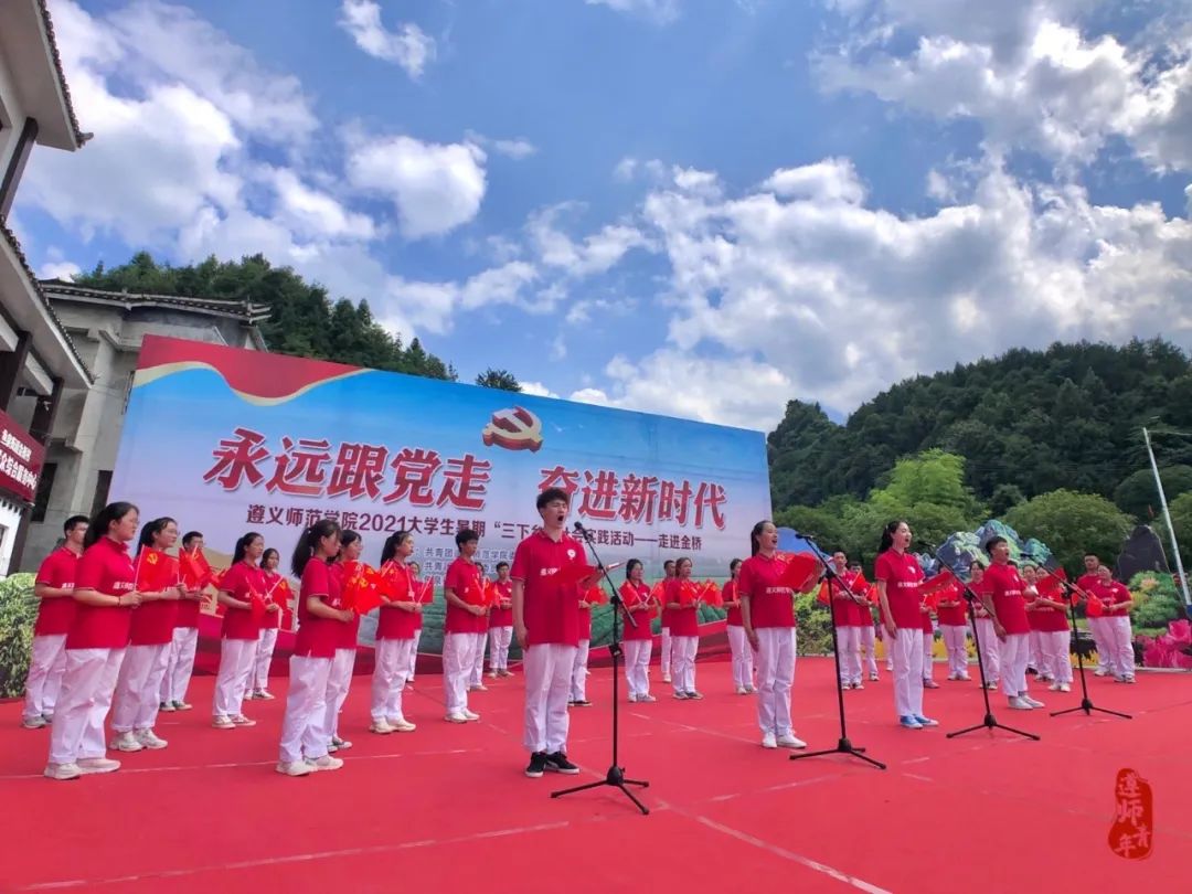 活动在湄潭县七彩舞蹈的小朋友们带来的舞蹈《我们是共产主义接班人》《湄潭—茶姑娘》中拉开序幕,金桥村村民带来的情景剧《十送红军》、七人快板《家乡》、beat365“三下乡”社会实践队带来的红色故事讲述《八女投江》、朗诵《请党放心•强国有我》、合唱《强国一代有我在》等一个个精彩的节目带大家回到那个烽火硝烟、意志弥坚的岁月,重温了中国共产党的百年初心,展现了少年,青年与群众“同心向党”的风采,赢得了现场观众的阵阵掌声。