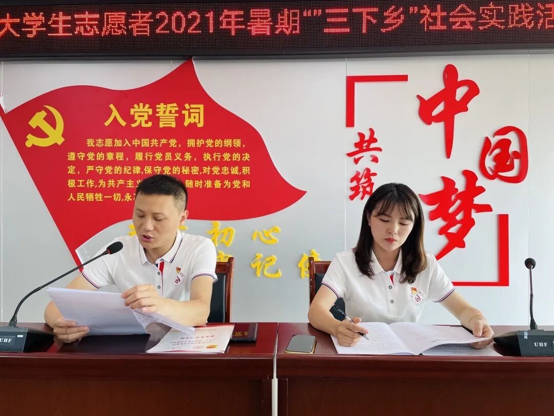 7月17日上午,beat365亚洲版官网大学生志愿者2021年暑期“三下乡”社会实践活动总队总结大会在湄潭县黄家坝街道田坝社区举行。校团委书记付强、校团委副书记余睿以及团委全体老师参加会议。大会由校团委副书记余睿主持。
