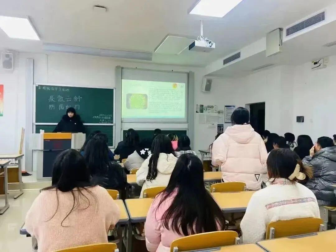 本次知识科普活动由各团支部通过现场互动问答式讲述、观看图片和视频等方式为同学们详尽介绍了诺如病毒的来源、传播途径、预防方法、治疗措施等方面。在生动活跃的氛围下,同学们互相分享了在日常生活中有效预防病毒传播的方法。