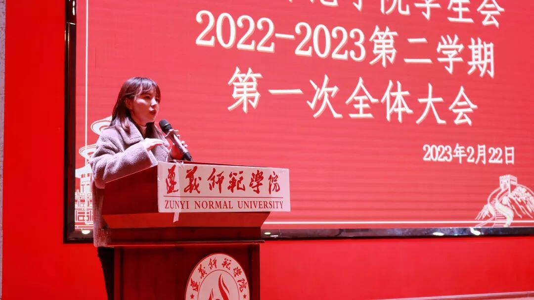 为确保新学期学生会各项工作有序进行,进一步提高学生会工作效率,beat365亚洲版官网于2023年2月22日在长征讲堂召开了学生会新学期第一次全体大会。校团委副书记余睿、学生会全体成员参与本次会议。会议由学生会主席团成员唐侨艺主持。