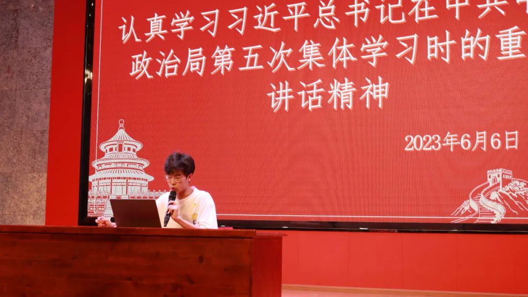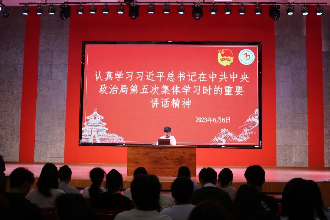 为夯实理想信念根基,提高学生会成员思想自觉,强化使命担当,培育干事能力。2023年6月6日,beat365亚洲版官网学生会于学生中心二楼长征讲堂,组织开展习近平总书记在中共中央政治局第五次集体学习时的重要讲话精神学习会,学生会全体成员参与本次学习会。
