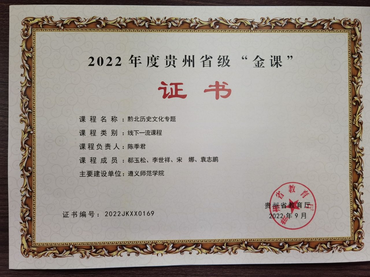 2002年,陈季君在学校开设“黔北地方史专题”选修课,自编20余万字的《遵义历史纲要》讲义,帮助学生认识和体验黔北地方文化,为未来从事中学教学积累乡土资源素材。该课程后升级为“黔北历史文化专题”,并成为历史学专业核心课程,获评省级一流课程(“金课”)。