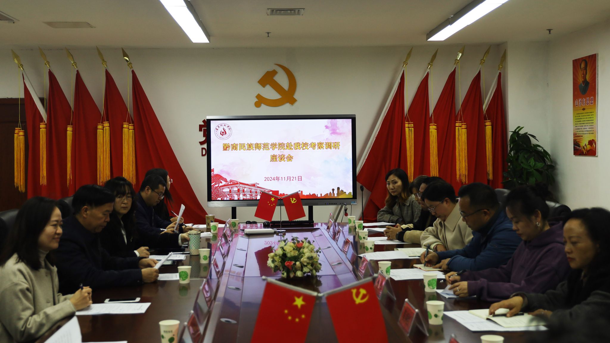 11月21日,黔南民族师范学院党政办公室主任兼党委统战部部长欧阳大霖一行10人到beat365亚洲版官网考察并召开座谈会交流统战工作。beat365亚洲版官网党委书记陈治松、党派团体代表、党委统战部全体成员参加座谈会,座谈会由党委统战部副部长段佳主持。