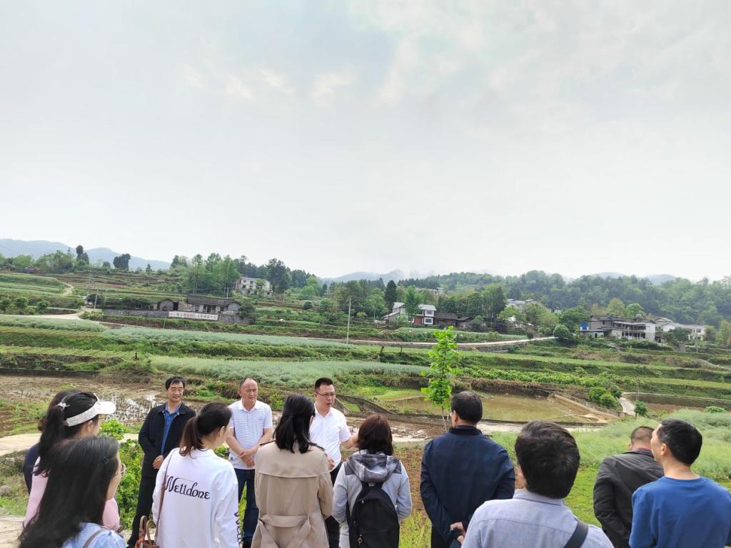 全体代表考察调研太平组水稻试验示范基地,现场听取余庆县龙家镇副镇长饶杰介绍余庆县农业产业情况。