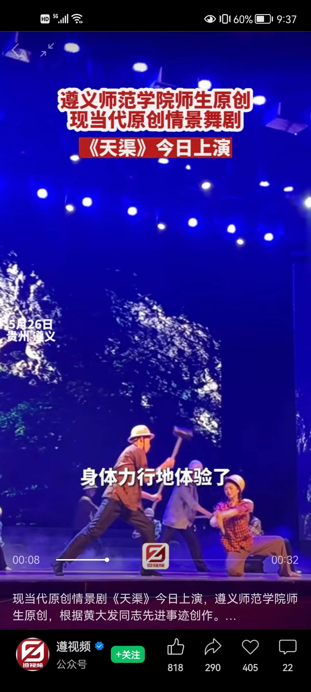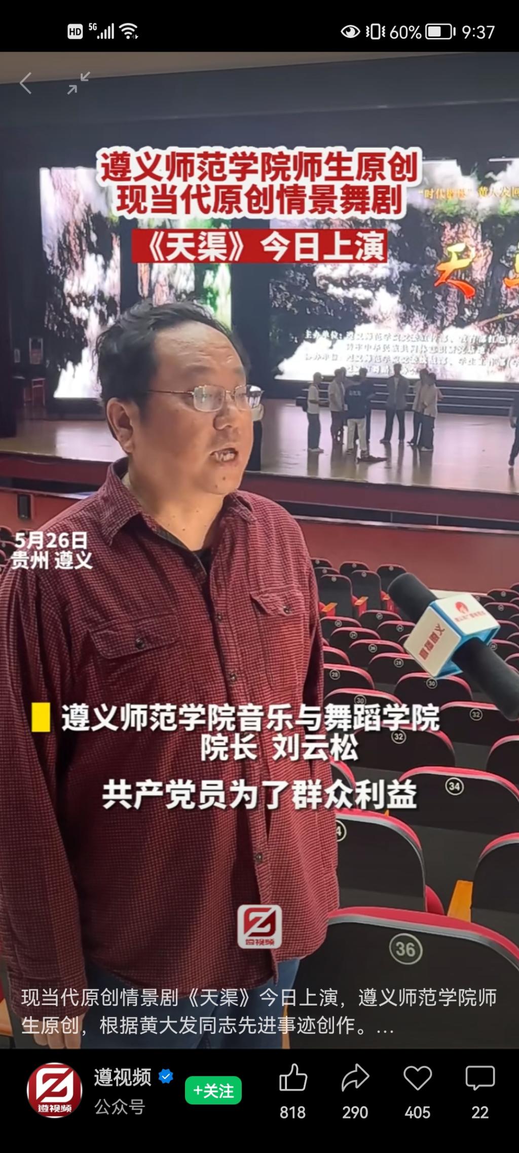 遵视频:现当代原创情景剧《天渠》今日上演,beat365亚洲版官网师生原创,根据黄大发同志先进事迹创作。