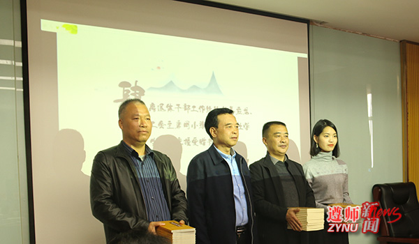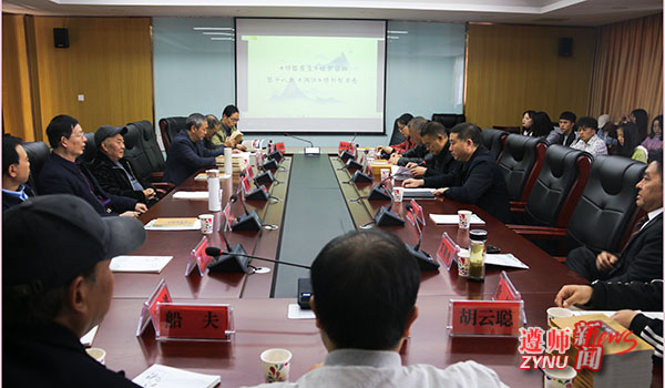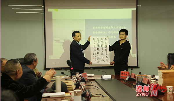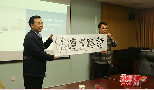 王刚就王林及其《诗路遗尘》相关情况作了介绍。王林退而不休,积极推广诗教活动、传播诗词文化,是学院“五老”的优秀典型。《诗路遗尘》汇集了王林所作约400件诗联作品,共分“百事感怀”“万象杂吟”“校园情谊”“黔地风情”等9类,是学院诗教工作的优秀成果。