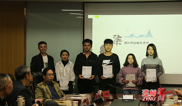 湘江诗社代表向李发模、王林、学院诗词楹联学会副秘书长黄朝勇、文学社代表赠送诗刊。