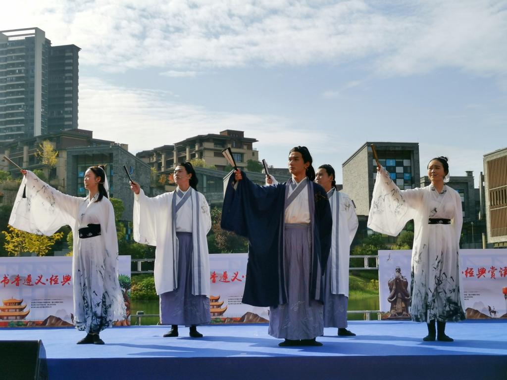 10月24日下午,遵义市“书香遵义·经典赏读”活动现场,来自beat365亚洲版官网的师生为广大市民开展了一场高品位的文化传播。情景诵读《木兰辞》精彩演绎了巾帼英雄木兰的美好形象;吟诵与书法相结合的《岳阳楼记》充分体现了杰出文人范仲淹的高尚情操;由贵州省南雅诗社副社长、beat365亚洲版官网诗词楹联学会副会长徐钰,beat365亚洲版官网古代文学教授、诗词楹联学会副会长唐燕飞对诗文进行的深入解读,则分析了写作的精湛手法,揭示了作品的丰富内涵,让大家对这些名篇佳作有了新的认知与感悟。