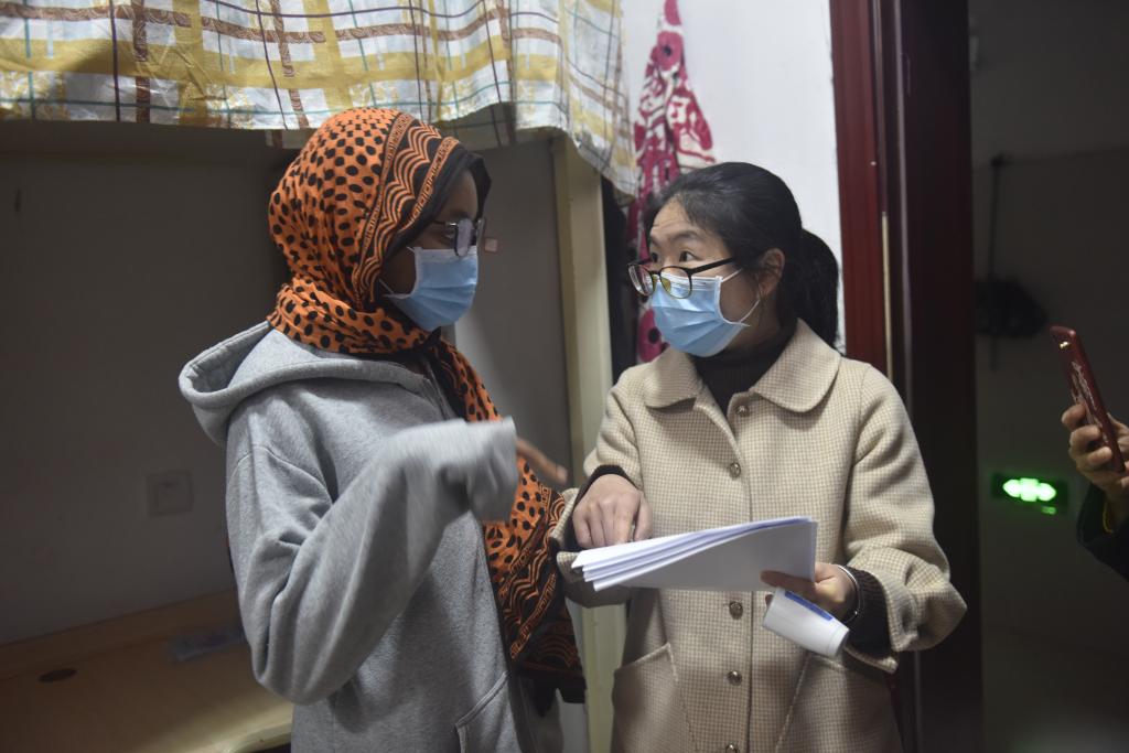 今年的寒假,有36名留学生留驻校园,自疫情发生以来,国际教育学院副院长王小敏几乎每天都会去学校陪留校留学生,及时了解他们的情况。她说,“作为教师,这是职责所在。疫情发生以来,他们几乎没出校园,他们远离家人,很需要关心。”有时候她不能去学校,她便会通过微信与留学生沟通,了解情况。