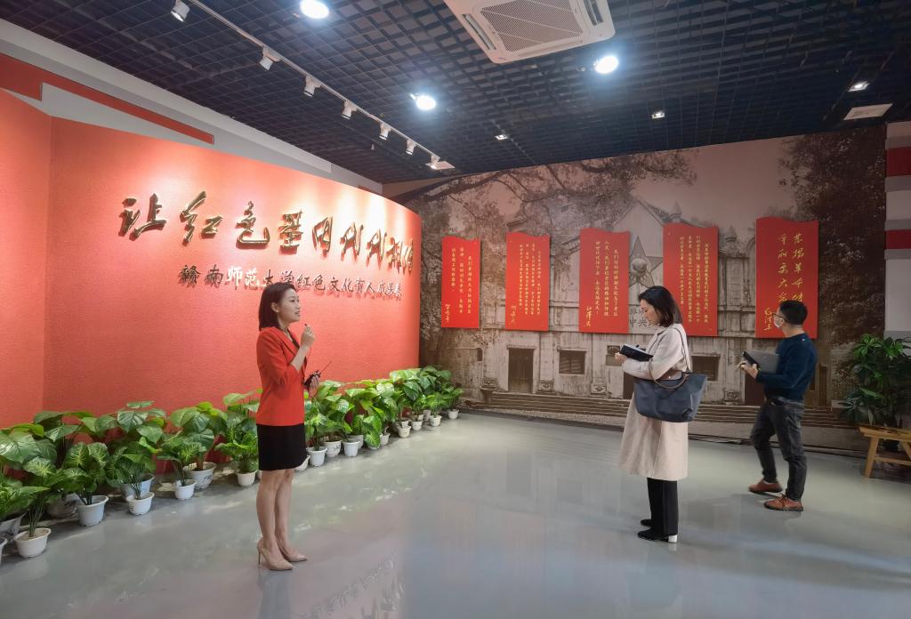 其间,黄玥一行考察了赣南师范大学红色育人成果展、苏区精神博物馆、客家文化博物馆等,赣南师范大学党委宣传部副部长刘权详细介绍了在红色育人、展馆建设、新闻宣传等方面的经验做法。黄玥一行还就校报编辑、新媒体融合等方面与赣南师范大学党委宣传部有关负责人进行了交流。