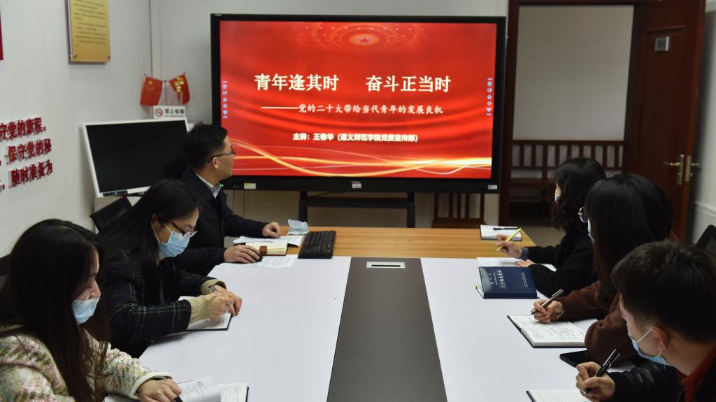 11月25日上午,宣传部部长、党支部书记王春华在行政楼304会议室宣讲党的二十大精神,宣传部党支部全体党员到场聆听。