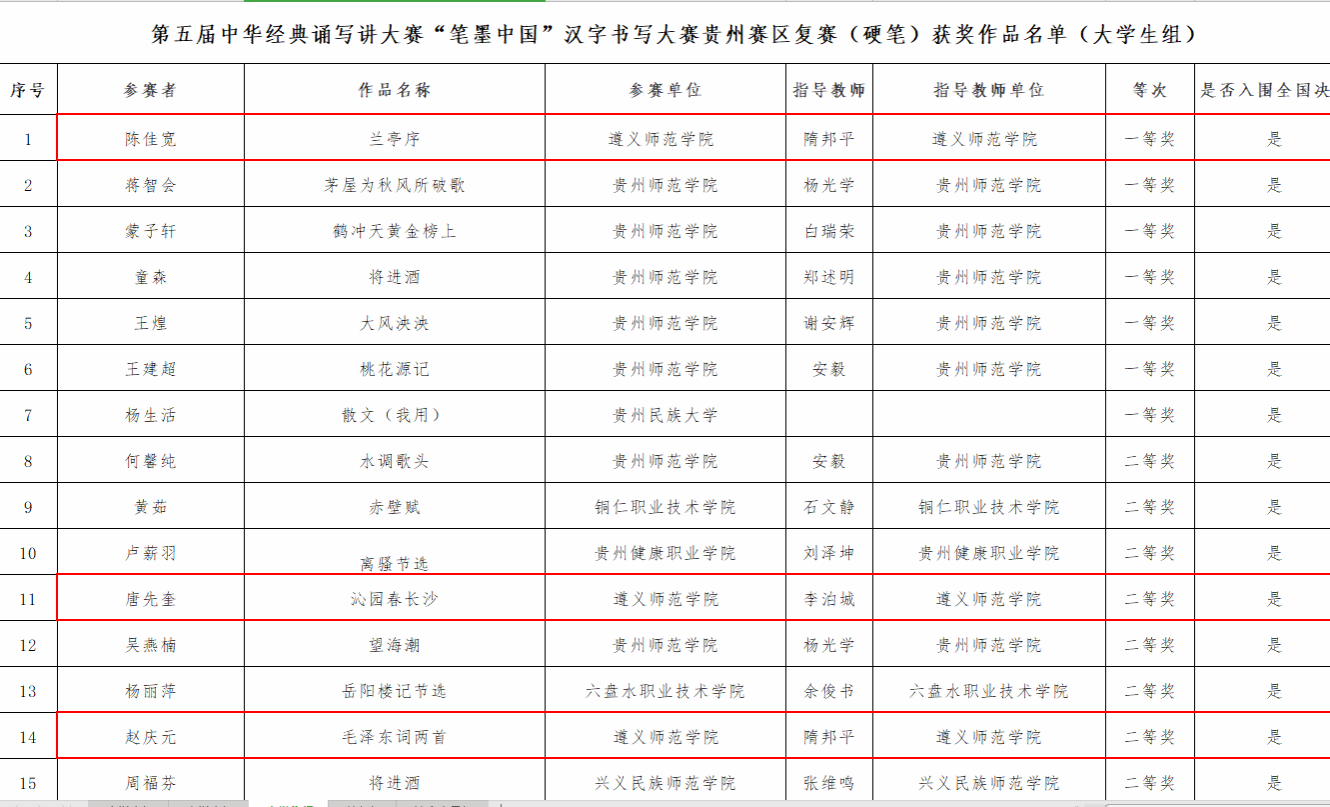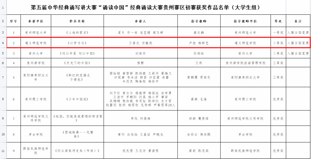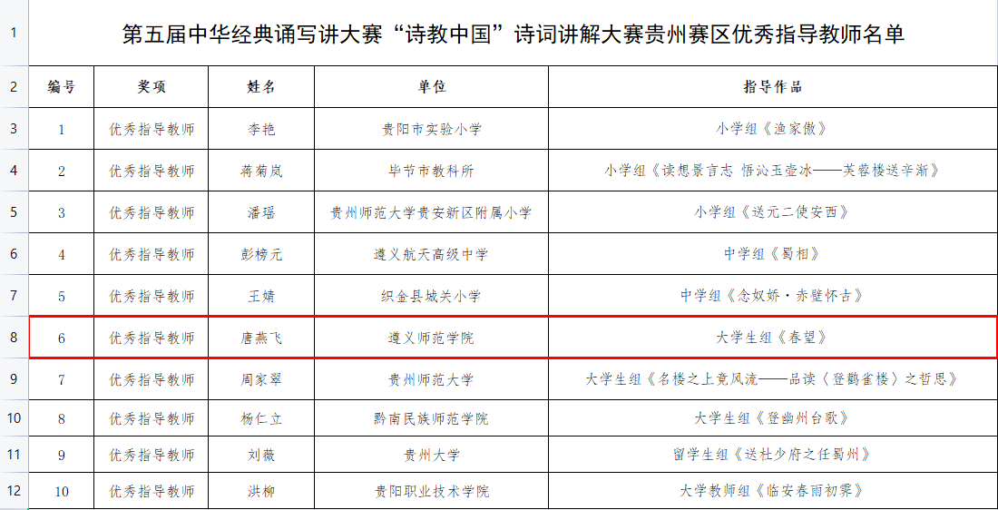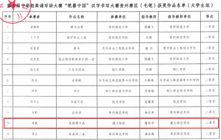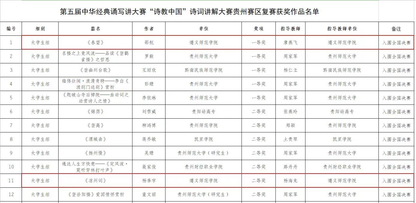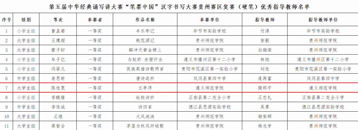近日,省教育厅公布第五届中华经典诵写讲大赛贵州赛区初复赛获奖作品名单,beat365师生在各类别赛事中喜获佳绩。