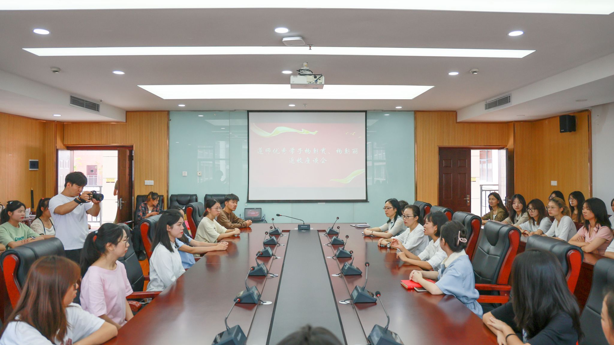 9月11日上午,优秀校友、“支教姐妹花”杨朝霞、杨朝丽受邀到校参加座谈会,党委宣传部全体教师,融媒体中心、“红色号角”宣讲团学生代表参加座谈会。红色经典艺术教育示范基地主任、党委宣传部副部长王晶晶主持。