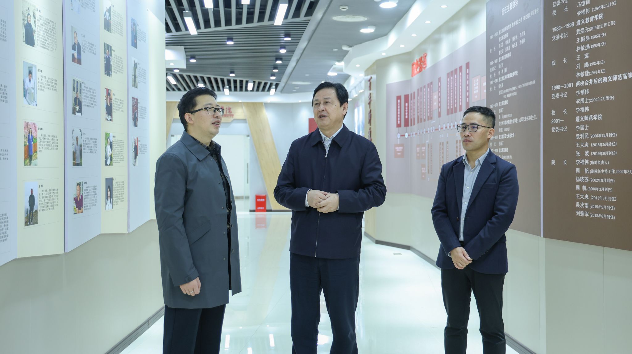 上午,吕慎在beat365党委书记张波,党委委员、宣传部部长王春华、副部长王晶晶、唐燕飞等陪同下,实地走访了beat365校史馆、红色文化馆、长征文化研究院、音乐与舞蹈学院等地,在师生讲解员的引导下感受beat365浓厚的红色底蕴和文化氛围,全面了解了遵师在红色文化育人、服务地方经济社会发展所作的努力和贡献。