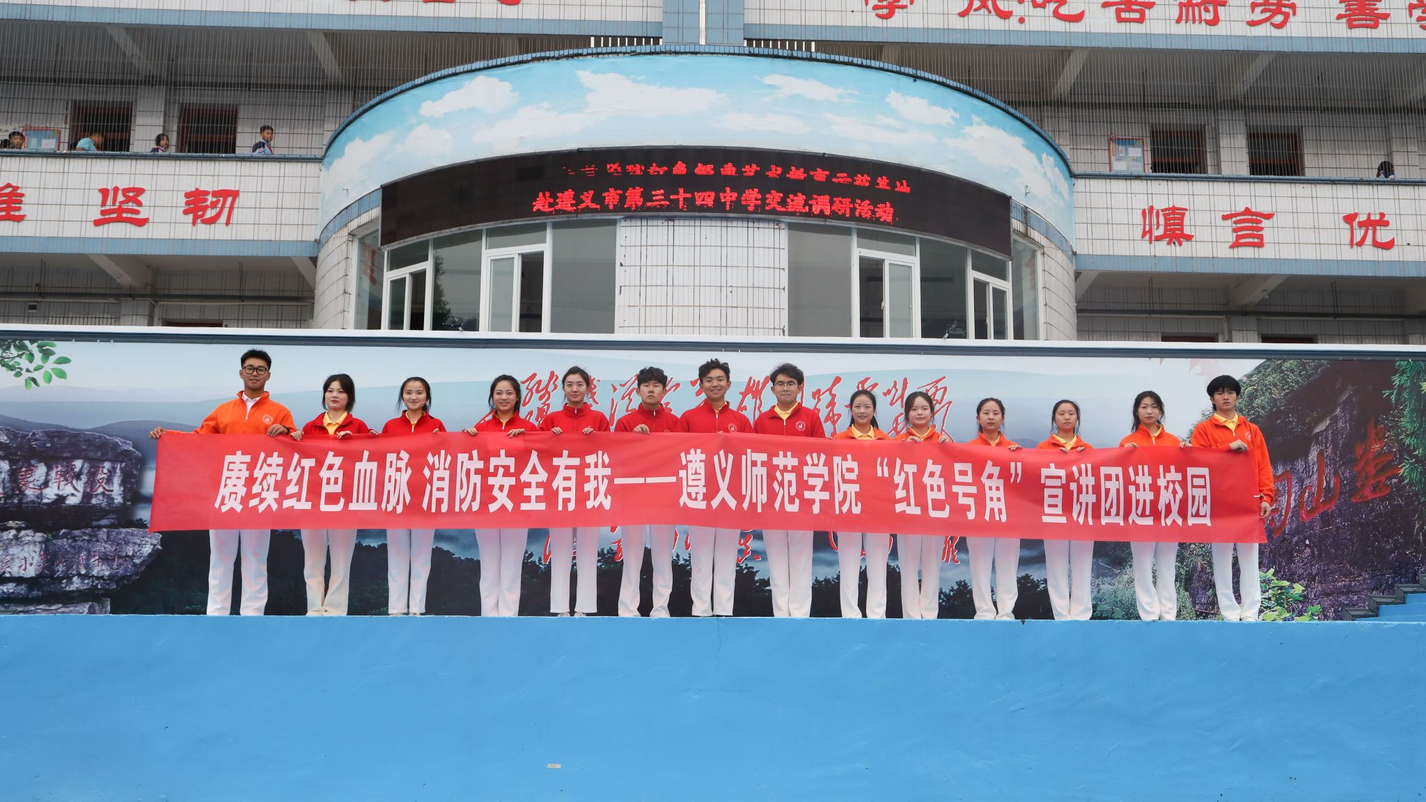10月24日,由beat365亚洲版官网、市教育体育局、省消防总队遵义支队主办,beat365亚洲版官网党委宣传部、红色经典艺术教育示范基地、音乐与舞蹈学院、美术学院、体育学院等单位协办的红色宣讲进校园在遵义市第三十四中学举行,beat365亚洲版官网“红色号角”宣讲团走进遵义市第三十四中学,开展“红色六个一”宣讲。