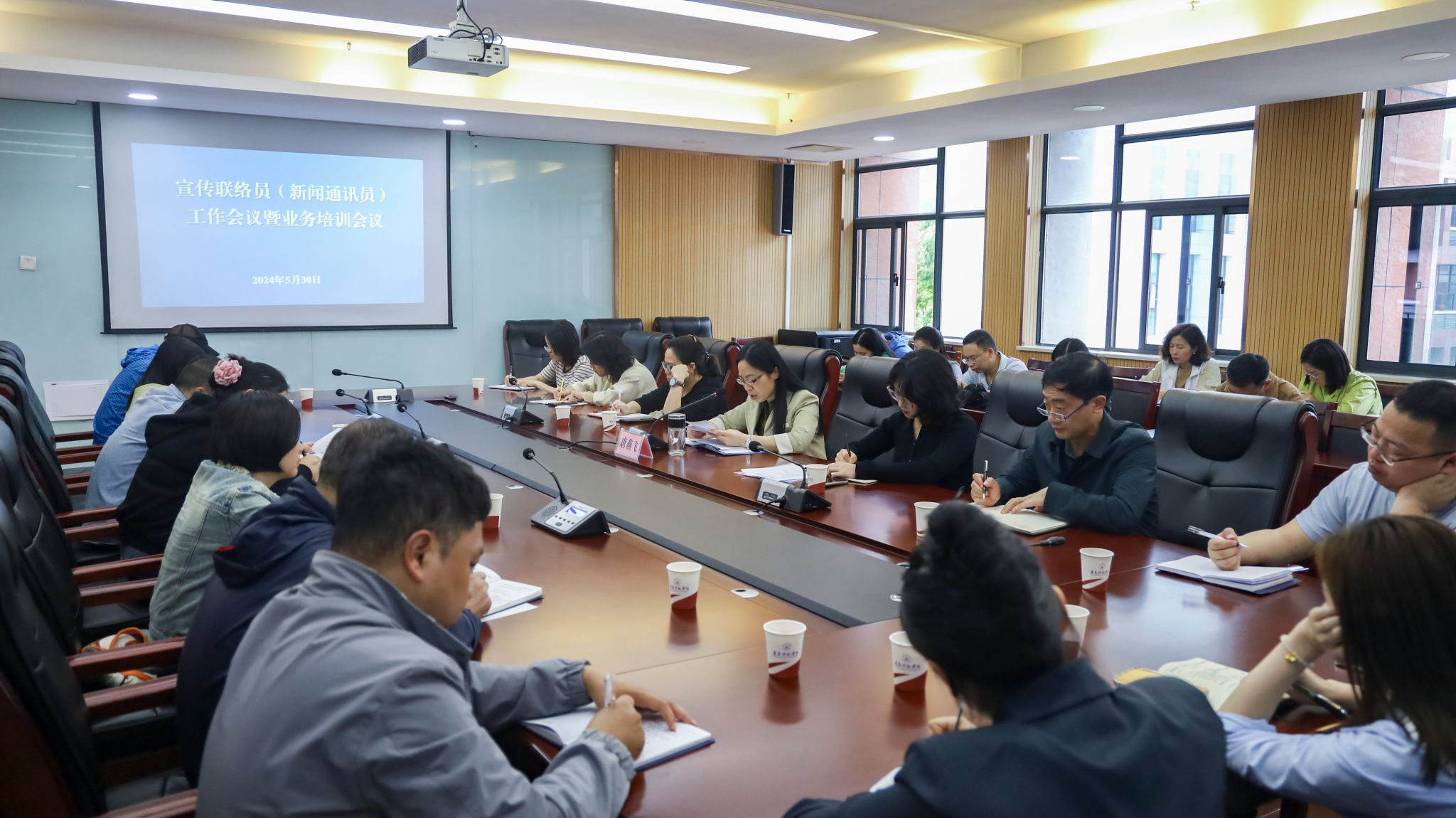 5月30日下午,党委宣传部在行政楼321会议室组织召开宣传联络员(新闻通讯员)工作会暨业务培训会,党委宣传部副部长唐燕飞主持,全校各单位宣传联络员(新闻通讯员)参加。