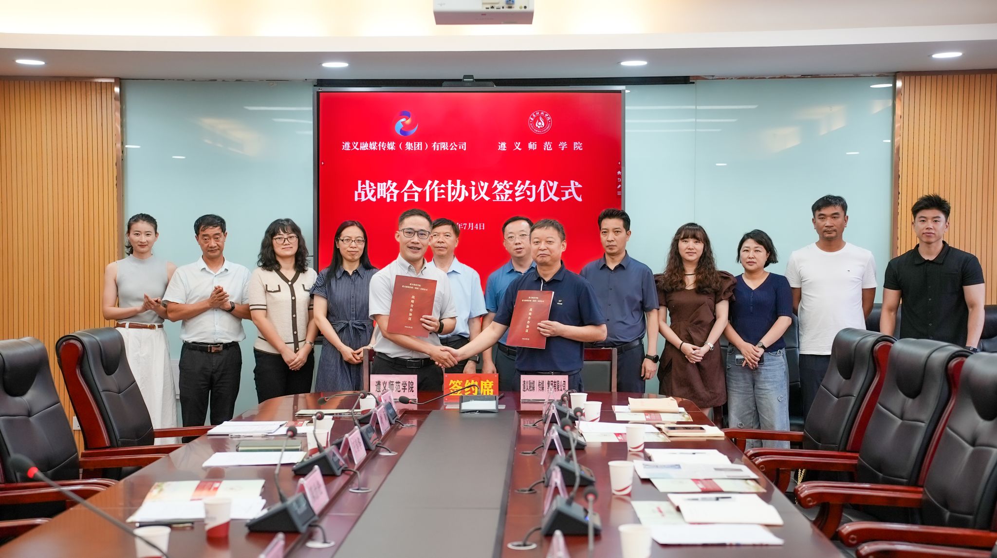 遵义融媒传媒(集团)有限公司党委书记、董事长龚小松,beat365亚洲版官网党委委员、宣传部部长王春华代表双方签约。遵义融媒传媒(集团)有限公司有关负责人、beat365亚洲版官网党委宣传部全体人员参加。